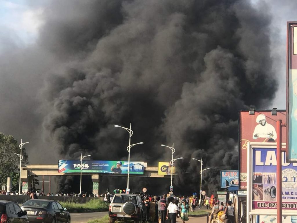 The protest started Thursday afternoon after another pedestrian was knocked down and killed on the Madina-Adenta highway.