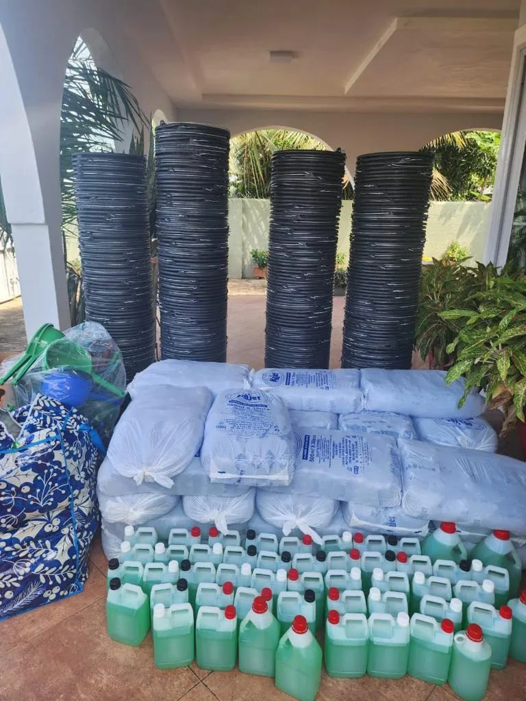 The items donated were: 300 bags of Satchet water, 300 mats, 90 gallons of liquid soap 300 buckets, and 90 pails.