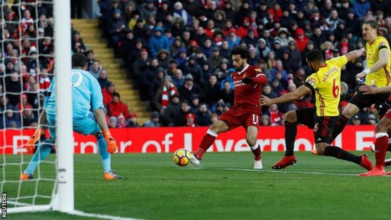 Salah danced through Watford’s defence to score early in the game before poking home Andy Robertson’s cross late in the first half.