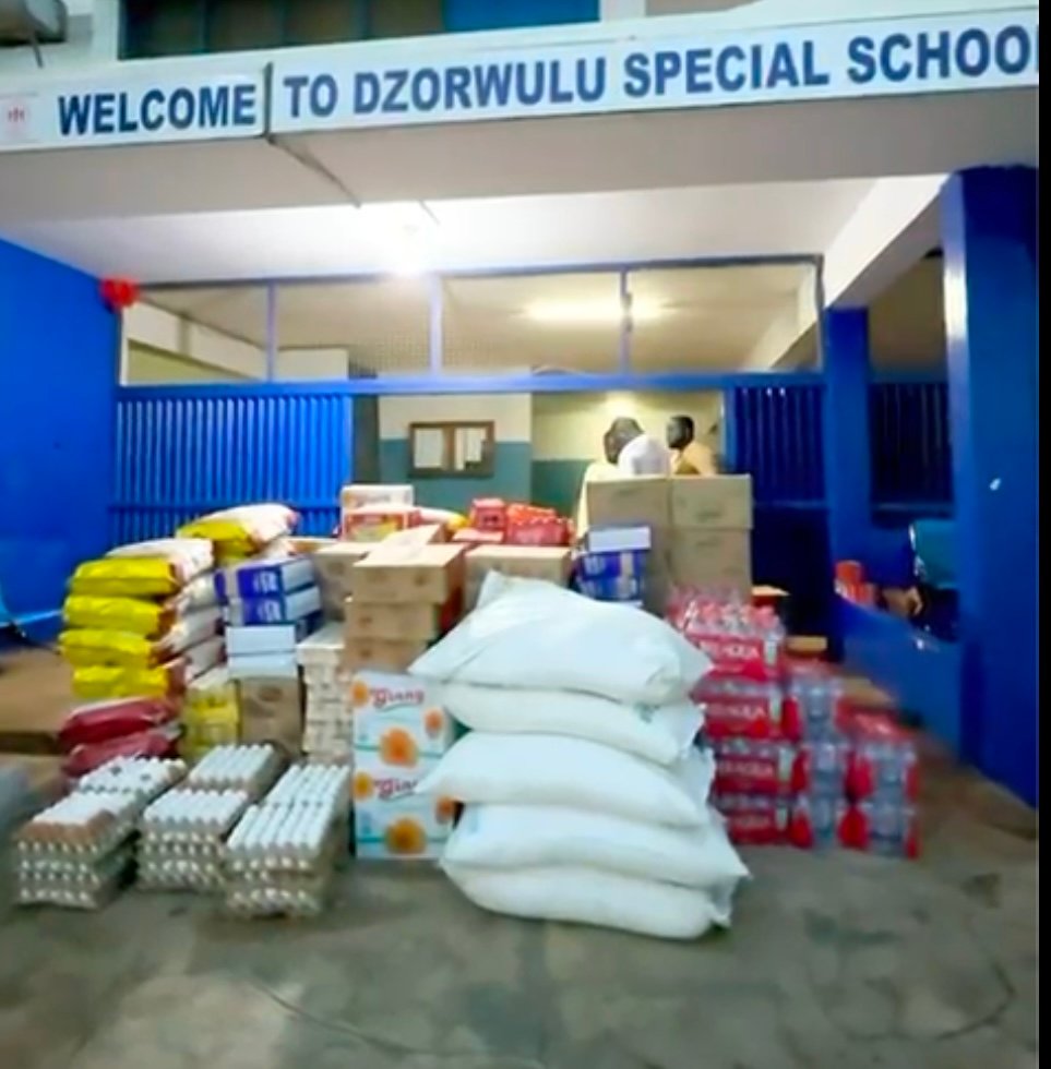 At the Dzorwulu Special School, he engaged with the pupils, exchanged pleasantries, and danced with the children alongside his team. He also donated food items such as rice, beverages, and other supplies.