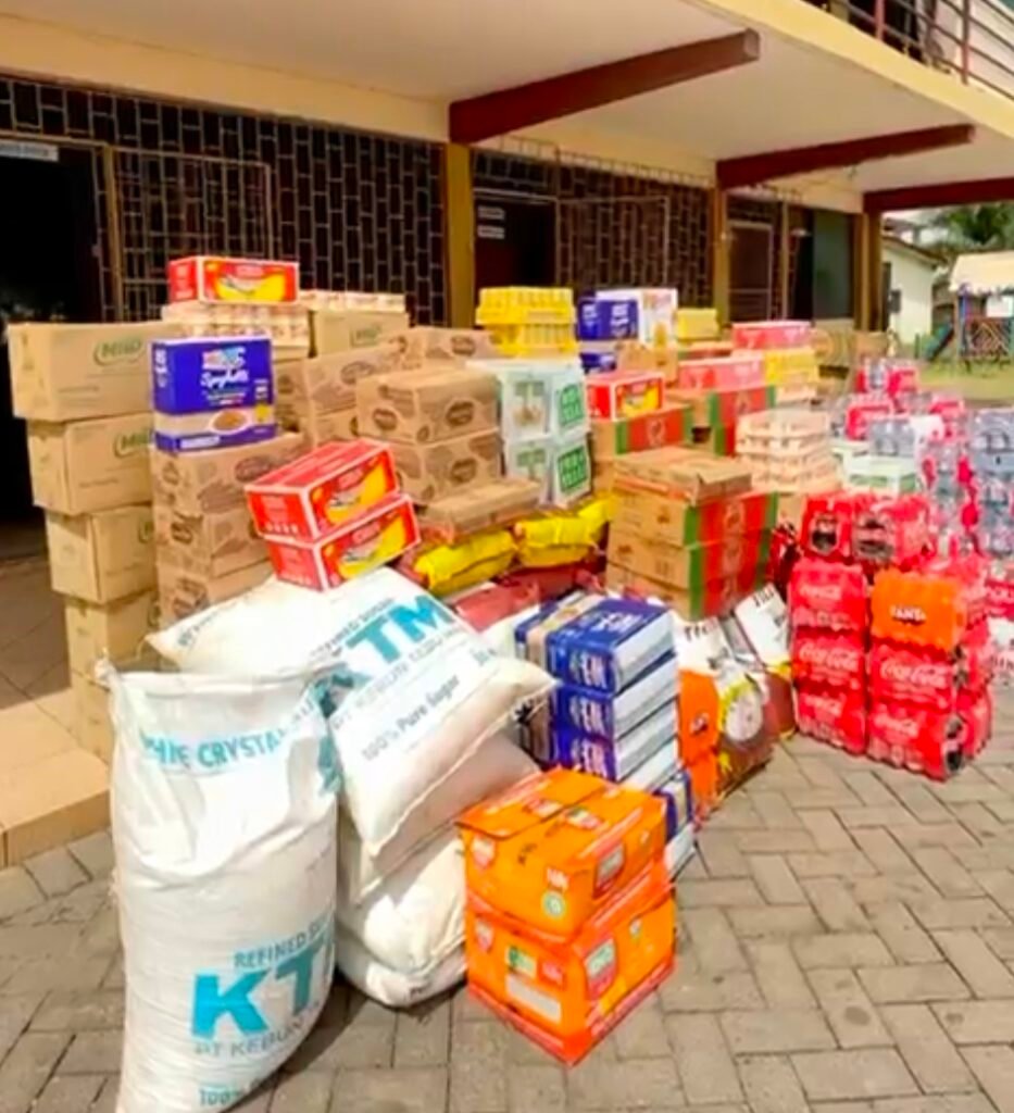 At the Osu Children’s Home, he donated food items including bags of rice, beverages, and other items, while also spending time interacting with the children.