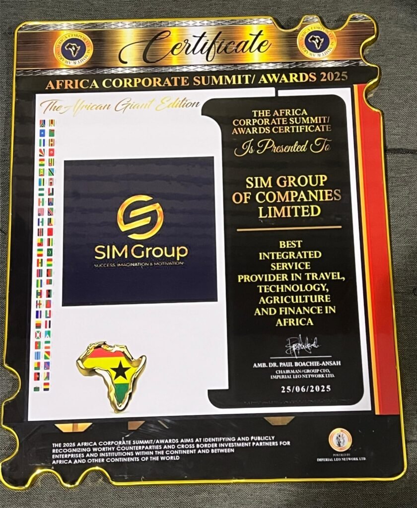 SIM Group was named Best Integrated Service Provider in Travel, Technology, Agriculture, and Finance, a recognition of its multi-sectoral impact and contributions to Ghana’s socio-economic development.