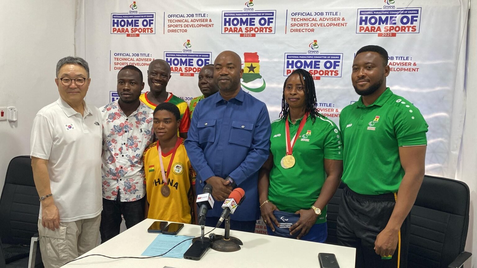 Also present at the ceremony were Gobina Edmund, captain of the para-athletics team; Coach Ibrahim Amin Suleman; Professor Kim, technical advisor to the Paralympic Committee; and members of the press.