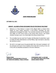In a release seen by Starrfm.com.gh the Committee has a week to submit its report to the Police and Military Command thereby commencing work on Tuesday, November 2, 2021.