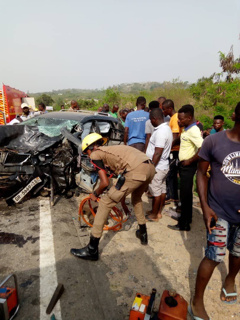 The three were on board a Pontiac Vibe Salon car with registration number GR 5669- 18 which was on its way to Accra from the Cape Coast stretch of the road. The car had a head-on collision with an on coming Toyota Pickup which belongs to the Small and Rural Enterprises Programme office in the Tano South Municipality of the Brong Ahafo region.