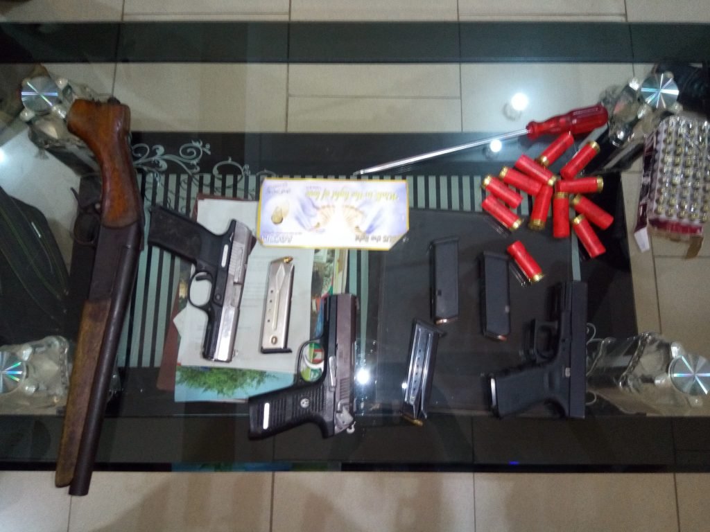 Three foreign pistols, four magazines with their ammunition, eighty-six pieces of 9mm ammunition, a short gun and twelve BB cartridges, believed to have been used to inflict horror on some targets, were retrieved from the leader of the ‘lawless characters’ during a heavy swoop on their dens.