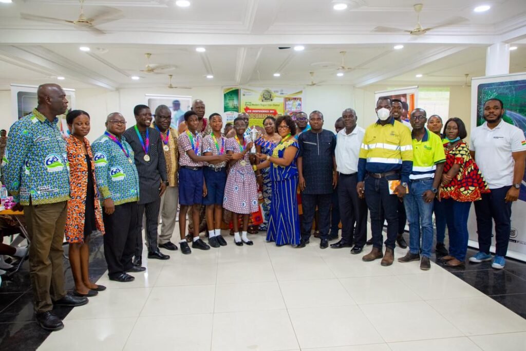 As runners-up, Goldfields International School from Tarkwa in the Tarkwa Nsuaem Municipality received a brand-new HP laptop, books, tablets, certificates, school bags, bronze medals, and plagues.