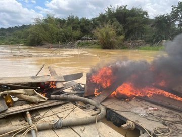 During the operation, officers destroyed one excavator and set ablaze over 100 makeshift structures used as mining camps.