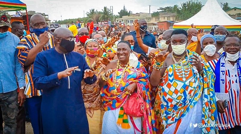 Speaking during a visit by Vice President Bawumia to the area to inspect on-going road projects and also cut the sod for the construction of a market in the area, Nana Akua Mansa II also emphatically endorsed the President’s second term bid.