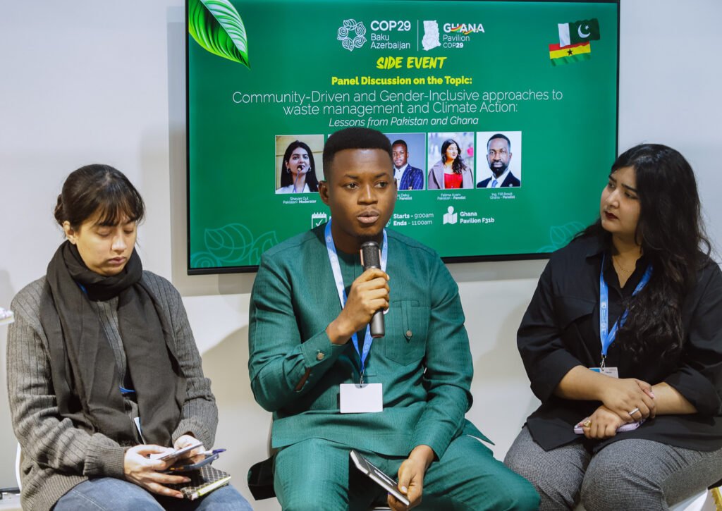 Mr. James Deku, a Communications Officer of Zoomlion Ghana Limited made this call at the 29th session of the Conference Of Parties (COP 29) of the United Nations Framework Convention for Climate Change (UNFCCC) at Azerbaijan, Baku whiles speaking on the topic “Community-Driven and Gender Inclusive approaches to waste management for Climate Action “.