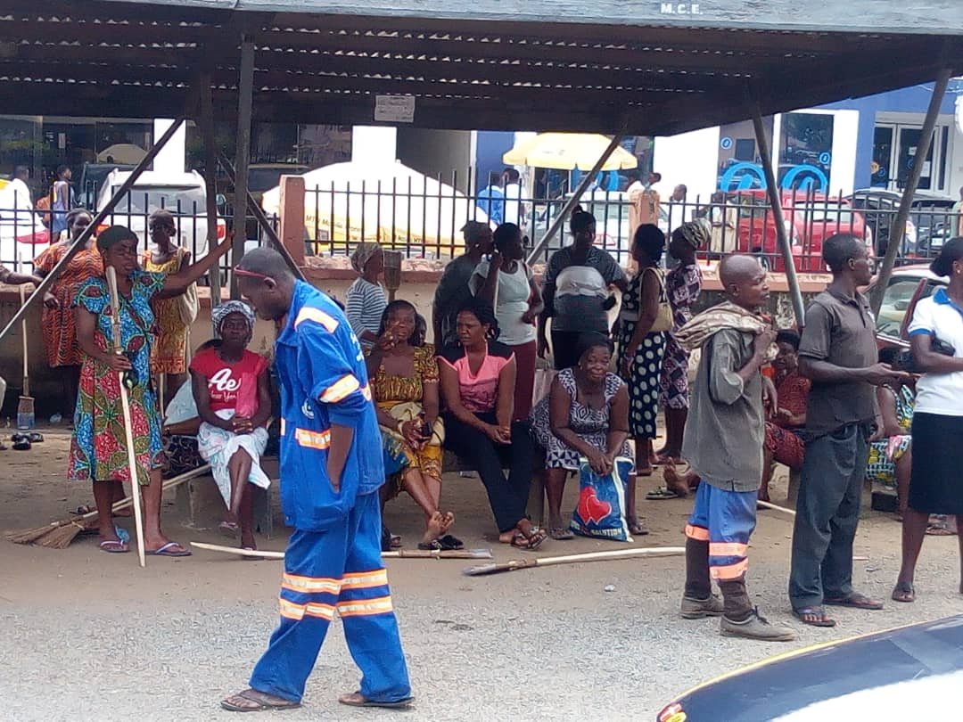 The agitating workers who had been at the premises of the Municipal Assembly Since Morning in anticipation of receiving their arrears were taken aback when they were told that the arrears will be paid later and rather 5kg bags of rice were made available for the workers.